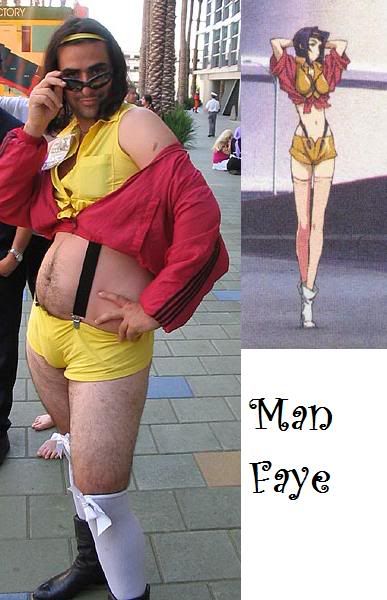 Now don't get me wrong, I am not slim either, I'm not dissing anyone because they happen to be fat. I'm dissing them because they have no self-awareness that they look plain wrong and... disgusting cosplaying like someone who definitely doesn't look anything like them. It's plain wrong. If I ever see someone like that I'll point my finger and laugh.